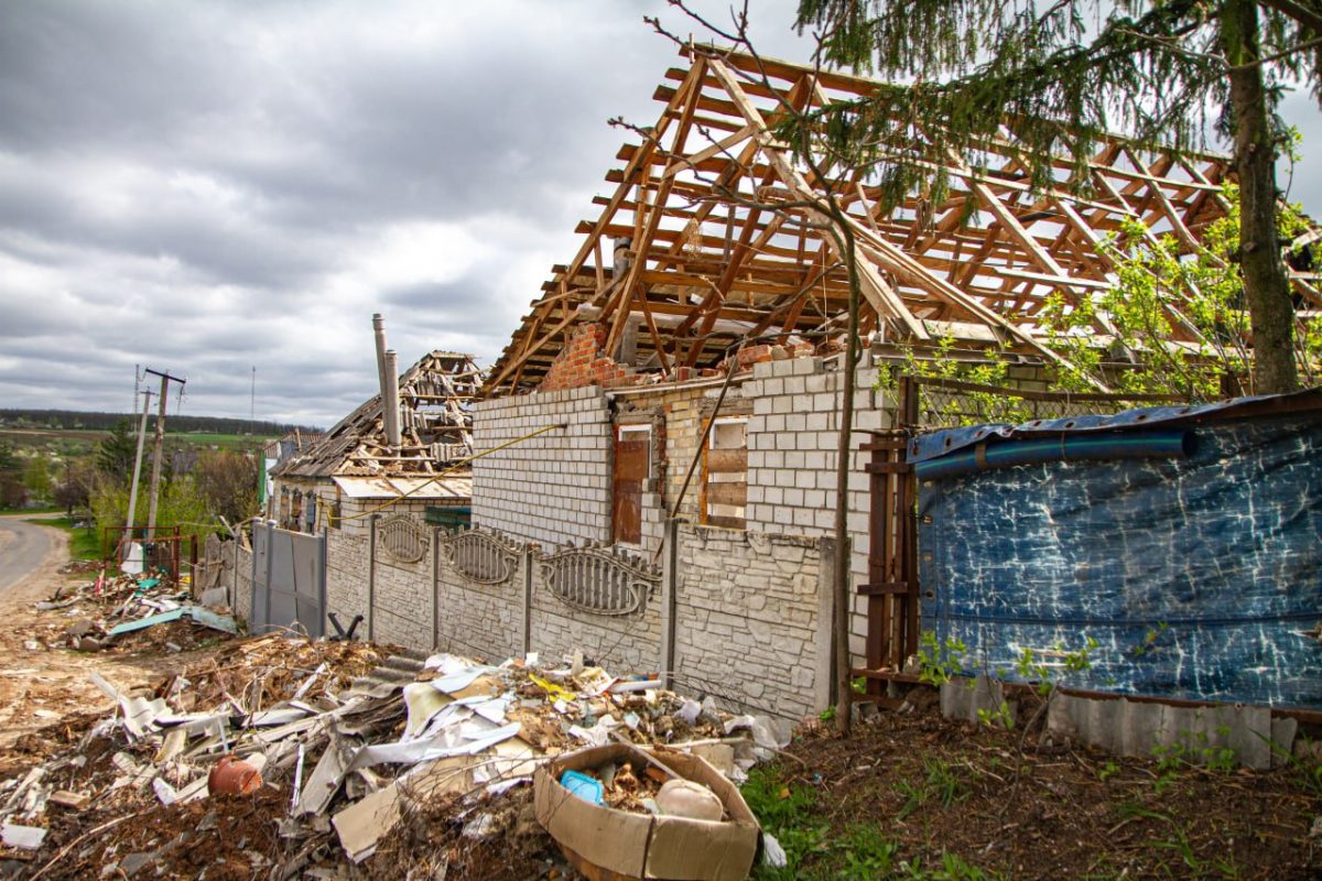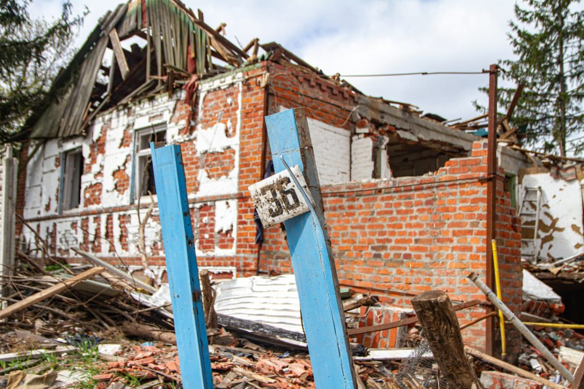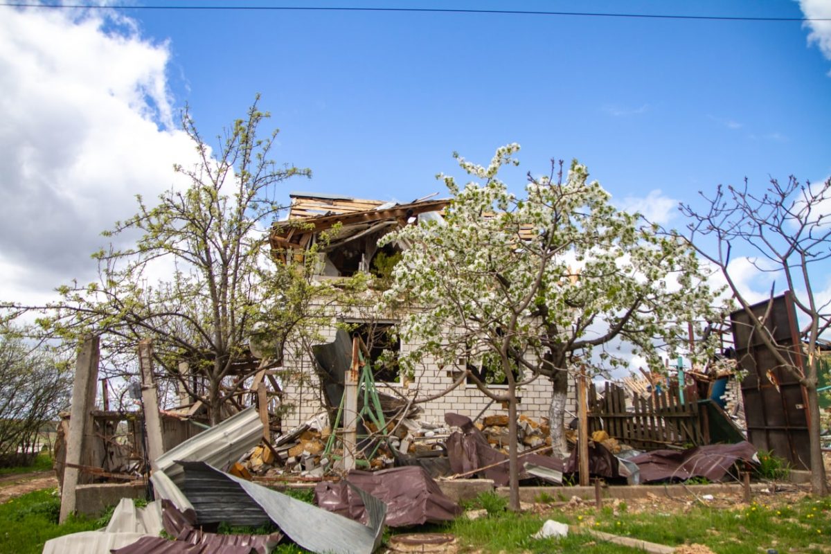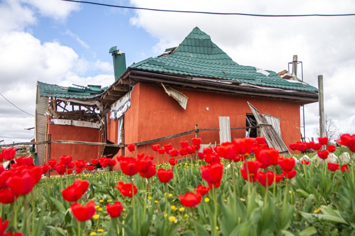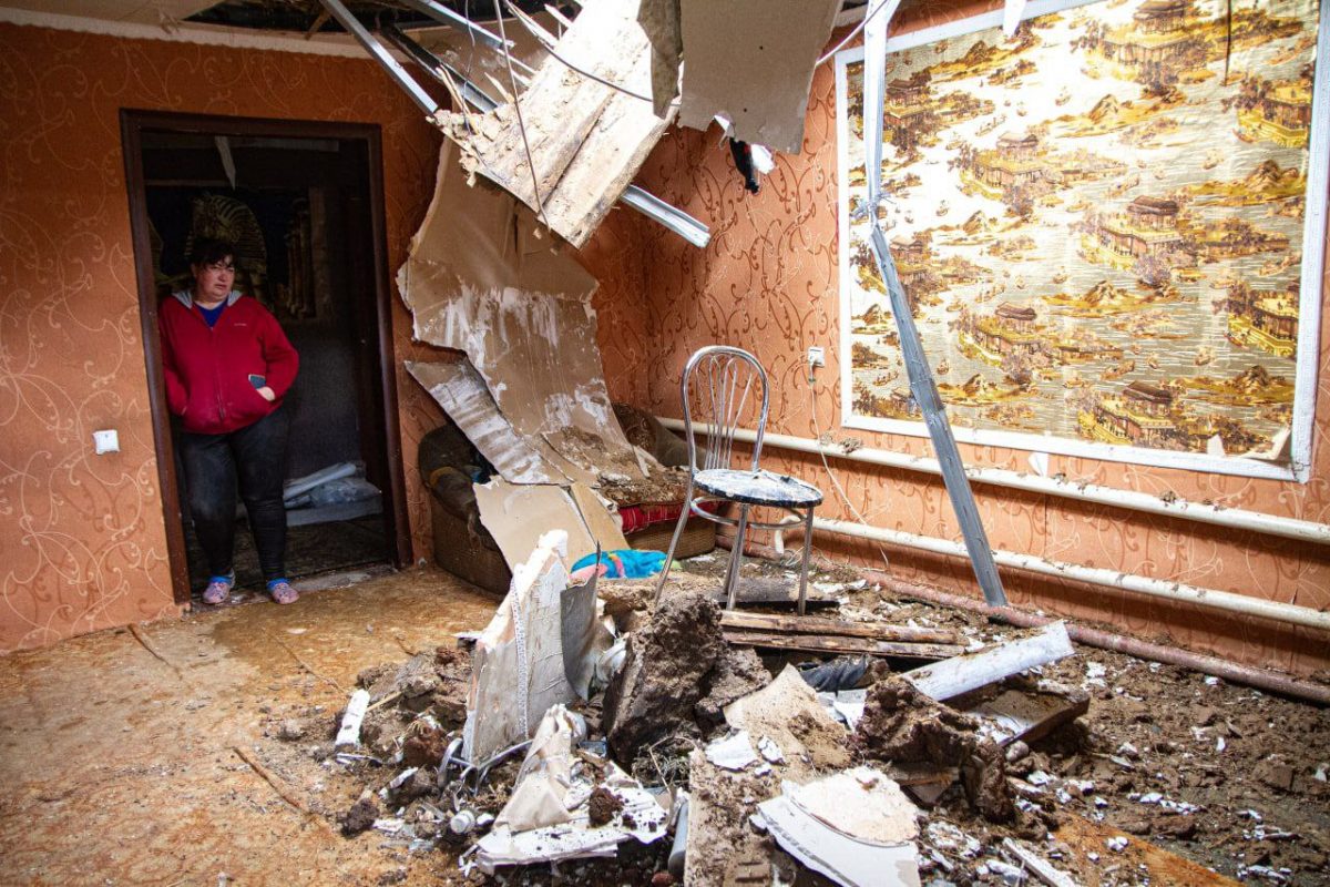 Біля одного з дворів зустрічаємо жінку середніх років. Любов запрошує нас до помешкання. Виявилося, що в будівлі вціліли лише стіни та вікна. Все, що всередині — не підлягає відновленню. На кухні — перевернуті меблі, побитий посуд. У центральній кімнаті пробита стеля, на підлозі стирчать залишки чи то ракети, чи то снаряду, в куточку великий порожній акваріум із водою — його мешканці не пережили цієї війни…