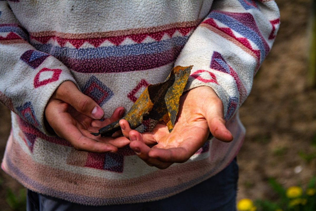 Далі хлопці проводять мені екскурсію городом, демонструючи осколки снарядів, які застрягли в деревах та валяються на землі. Попутно жаліються, що школи цього року вже не буде — вона теж серйозно постраждала від авіанальоту. Вони надзвичайні – тільки уявіть, діти мріють про школу, про навчання!