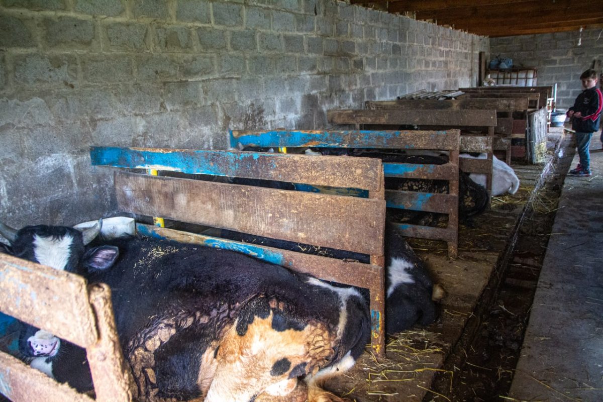 Молодші діти — 6-річний Вітя та 16-річний Руслан — ведуть мене показати господарство. У хліву нас голосно зустрічають кілька бичків, свиня з поросятами, вівці та разом з нами радіють, що вижили.