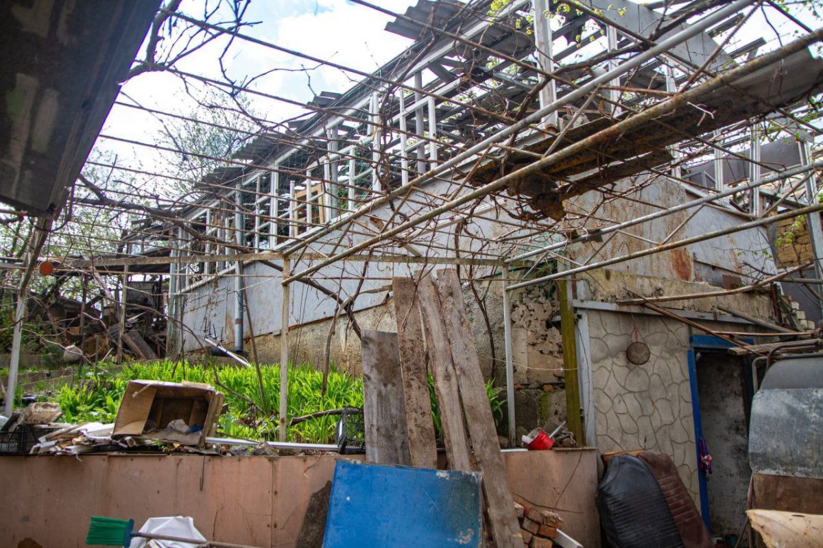 Ми припаркували машину поблизу двору із понівеченим будинком. На шум до нас вийшов господар — 65-річний Олександр. Він запрошує нас у двір. Навколо повна розруха — дворові будівлі перетворилися в руїни, теплиця без скла нагадує скелет якоїсь фантастичної тварини…