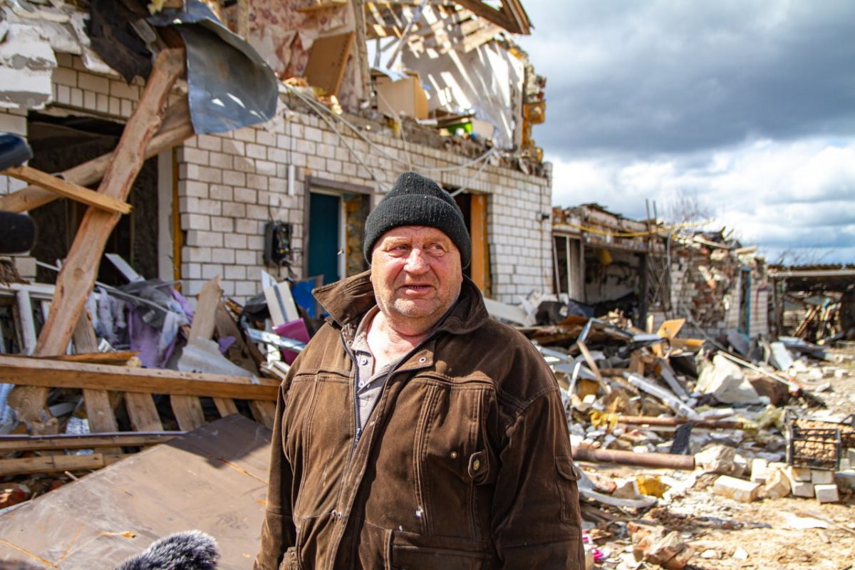 — Ми з жінкою вже лягли відпочивати. Почули свист і вибухи. Попадали з обох країв ліжка, заповзли під нього, тоді вже відчули, що на нас у буквальному сенсі сиплеться будинок. Ми вижили… Все зруйновано, все, що будували впродовж життя. Аби зруйнувати все — вистачило кілька секунд. «Дякуємо» «русcкому міру»!