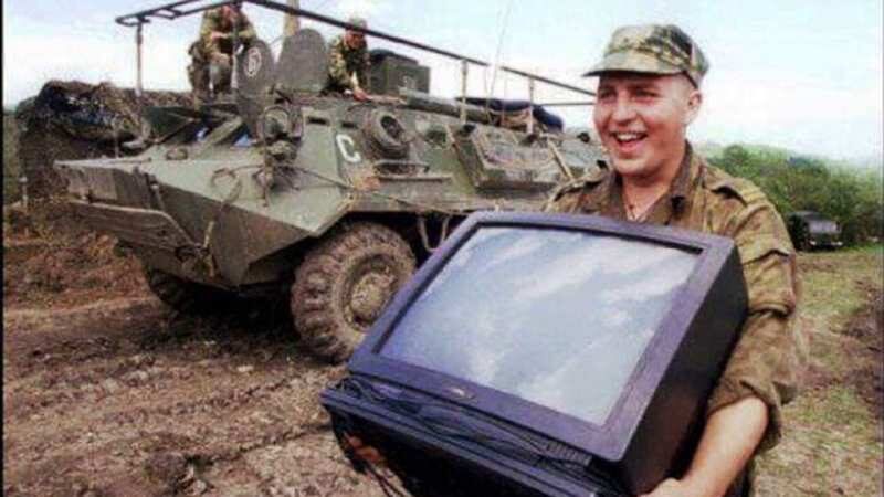 У багатьох містян «реквізували» холодильники, телевізори, пральні машинки, мікрохвильовки, завантажуючи їх прямо на БТРи і БМП. Я вже не кажу про телефони. У сусідньому під’їзді з квартир, де є малі діти, тягнули іграшки, примовляючи, що «наші діти таких іграшок ніколи не бачили і будуть радіти подарунку «баті»…