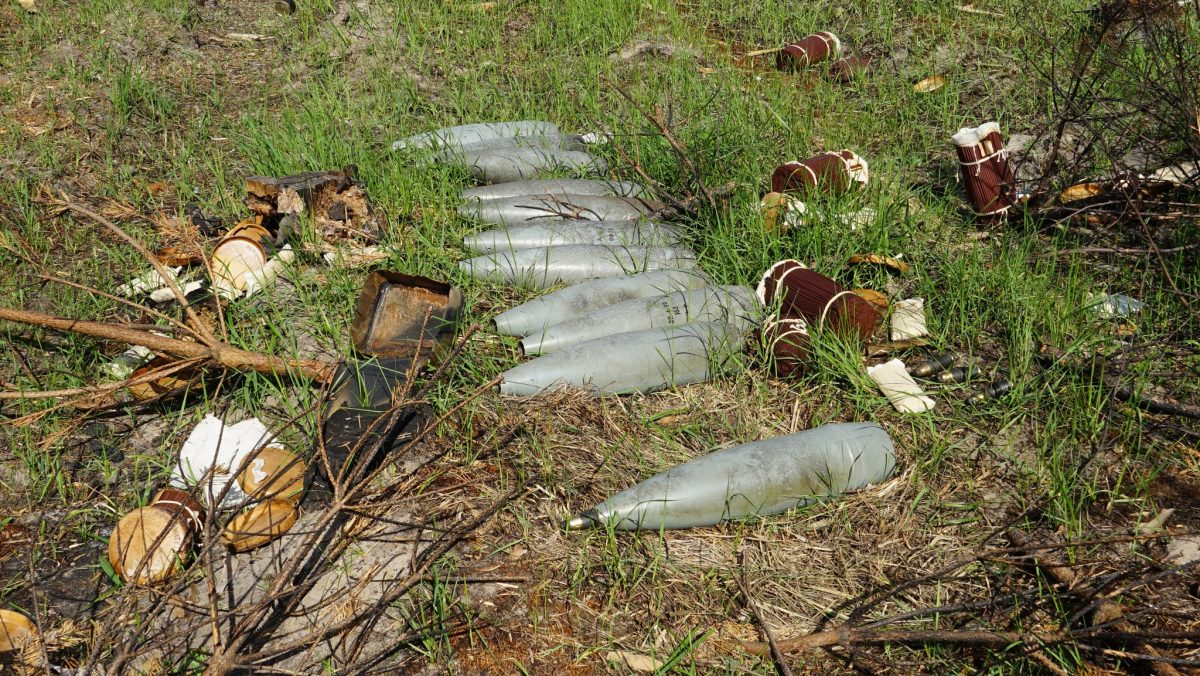 Група саперів під час обстеження територій навколо об’єкту виявили більше 200 одиниць артилерійських снарядів 152 мм, 15 мін 82мм, 2 протитанкові міни ТМ-62, гранати до РПГ-7 та інші набої.