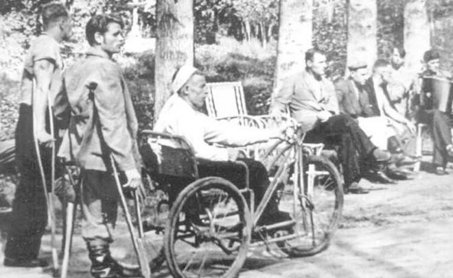 У різних українських регіонах функціонували 12 будинків-інтернатів для інвалідів без певного місця проживання. Там дах над головою знайшли 544 ветерани війни. Як же велося фронтовикам із каліцтвами у цих закладах? Життям вони там, звичайно, не насолоджувалися. Наприклад, «мешканців» Старобешівського інтернату (Сталінська область) влада забула забезпечити подушками, вони спали на допотопних солом’яних матрацах. А ліжко, яке видавали в інтернаті, перевіряльники визнали «непридатним для використання».