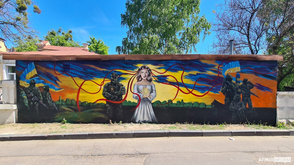 У Полтаві місцевий художник створив патріотичний мурал на тематику нескореної України. В центрі міста він прикрасив стіну одного з дитячих садочків. На ній митець зобразив по центру дівчину в національному вбранні, а з боків військовослужбовців ЗС України та прикордонників. Також до свого витвору він додав відомого песика Патрона, який допоміг знешкодити вже понад 2000 вибухонебезпечних предметів.