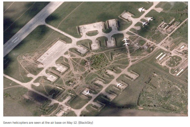 «На супутниковому знімку, зробленому 12 травня о 15:58 за місцевим часом, на авіабазі помітно щонайменше сім гелікоптерів. Лише один гелікоптер видно на супутниковому знімку, зробленому 7 травня о 6:02», – йдеться у матеріалі.