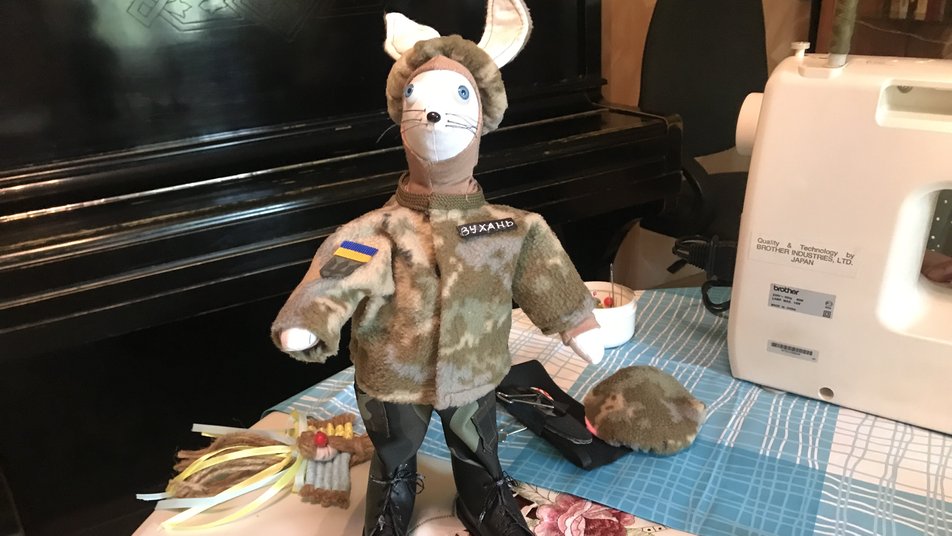 — Чому заєць? — пояснює пані Ірина. — А тому, що це тварина, яка мусить опиратися ворогу, виживаючи за досить складних умов. Вухань спритний, вміє маскуватися, швидко бігає, заплутуючи сліди. І все — аби зберегти своє життя. Він розумніший за своїх ворогів, тому й виживає. Я вважаю, що наші воїни саме такі, адже вони зараз — у тому суворому лісі, наповненому вовками.