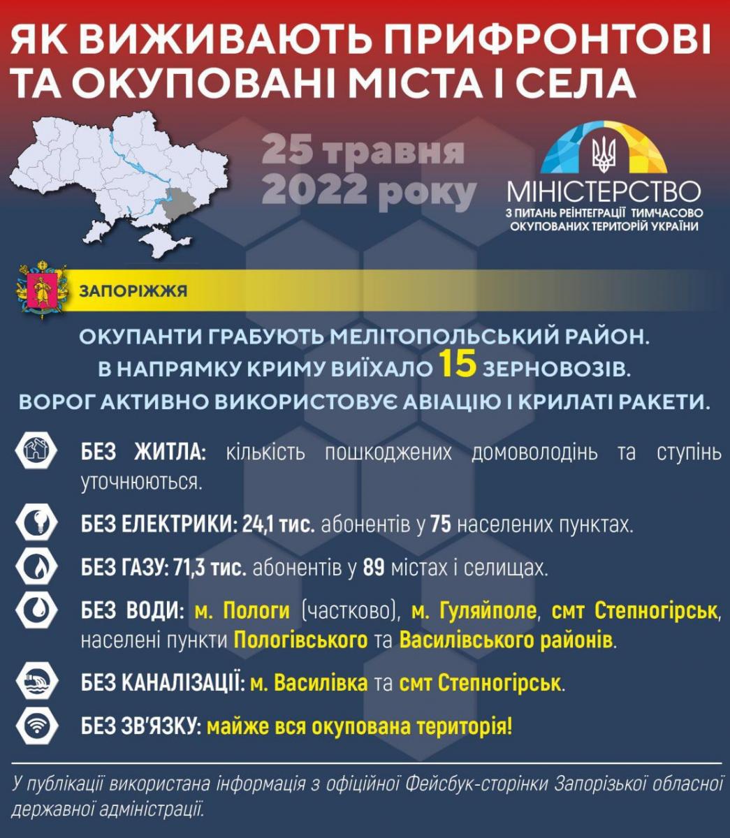 У публікації використана інформація з офіційної Фейсбук-сторінки Запорізької обласної державної адміністрації. Оскільки бойові дії на території області тривають, навести повну і точну статистику щодо ситуації на непідконтрольних територіях наразі неможливо.