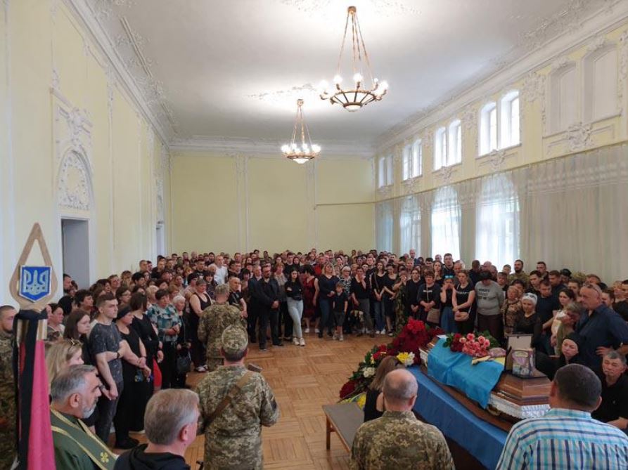 З Ярославом Косюченком прощалися вже за сумною традицією у приміщенні 30-го гарнізонного Будинку офіцерів. Мала зала закладу військової культури, у якій відбуваються скорботні заходи прощання з загиблими захисниками, завжди переповнена, але цього разу дуже багато бердичівлян навіть не змогли до неї потрапити, так багато містян прийшло провести в останню путь молодого героя.