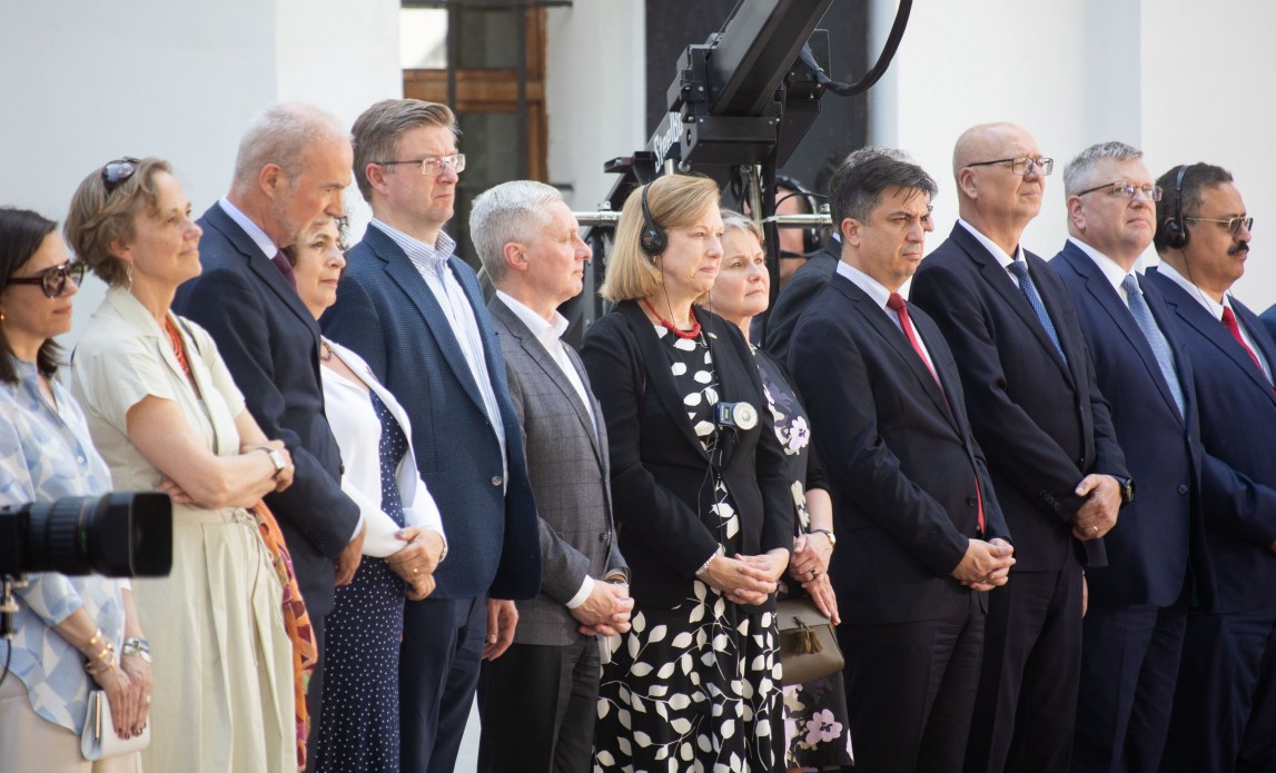 З рук Президента державні нагороди також отримали Посол Польщі в Україні Бартош Ціхоцький та Апостольський нунцій, архієпископ Вісвальдас Кульбокас, які всі 99 днів повномасштабної війни Росії проти нашої країни не залишали Київ.