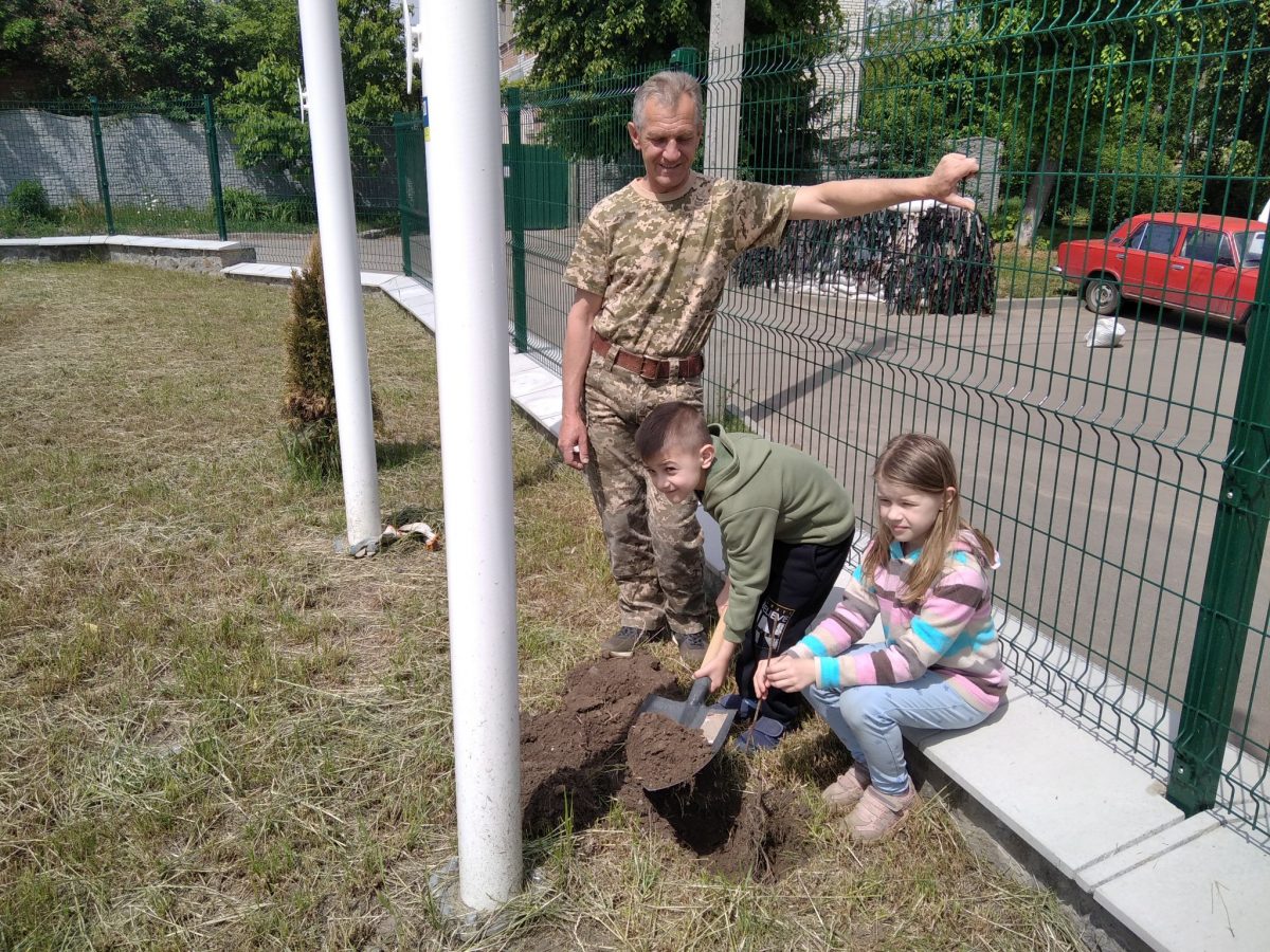Координував процес Павло Мигун — викладач закладу, учасник бойових дій. Воював Павло Петрович не абиде − був командиром бойової машини піхоти у складі бригади імені Чорних Запорожців. На передовій учитель біології дістав контузію, травму хребта. Тож не дивно, що він не лише пояснює дітям, як висаджувати кущі, а й якою ціною дається мир…