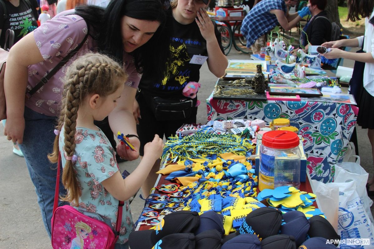 Веселим дитячим сміхом наповнився сьогодні Вінницький центральний парк імені Леонтовича. Тут благодійна організація «Я допомагаю дітям» проводила ярмарок на підтримку Збройних Сил України. І поки діти смакували ласощами, дорослі могли придбати смаколики, обереги, футболки та кепки з патріотичною символікою, зокрема і вироби, власноруч виготовлені учнями вінницьких школи-ліцею № 7 та художнього училища № 5, а також Сутисківської школи-інтернату.