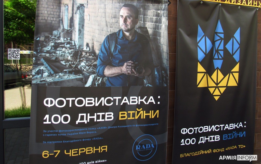 Усе це — про фотовиставку «100 днів війни», яка відкрилася у Львові на базі одного з волонтерських пунктів. Понад 7 десятків світлин, авторами яких є Дмитро Козацький — нацгвардієць, боєць полку «Азов», який зараз перебуває в полоні. Та фронтовий фотокореспондент Юрій Верес.