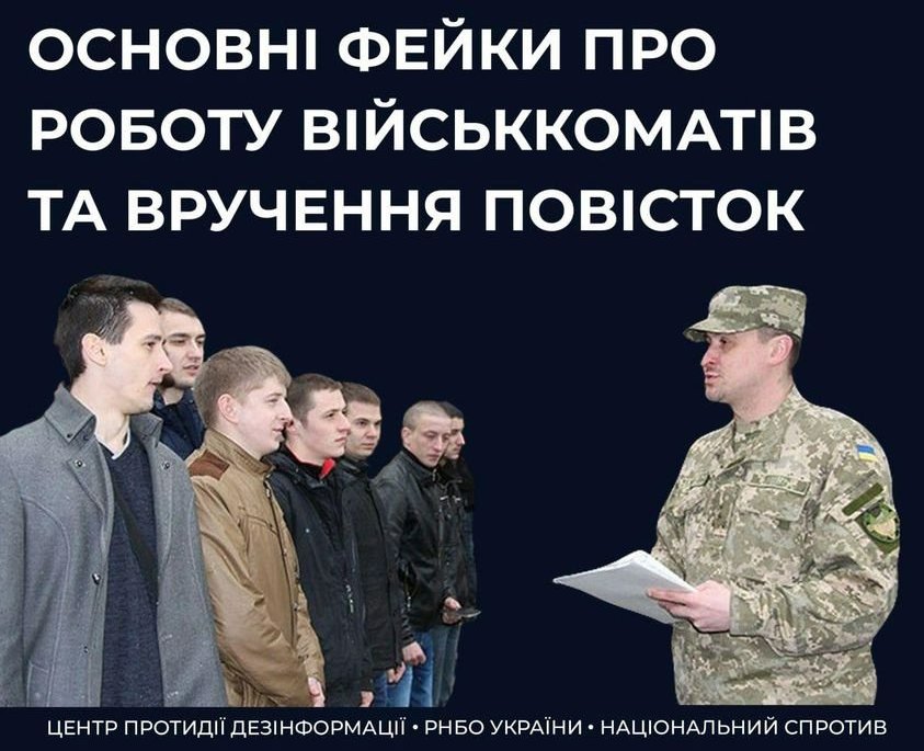 Спростування: у повістці визначається дата і час прибуття до територіального центру комплектування для проходження військово-лікарської комісії. Вручення повістки не означає мобілізацію. Насамперед виклик до військкомату — для перевірки даних громадянина і визначення його придатності до служби.