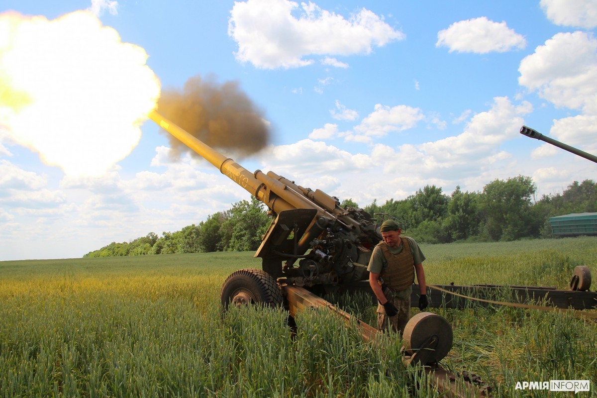 Заряджання, наведення, команда і залп… Два з однієї гаубиці та три по координатах з іншої, навкруги дим й пилюка і бійці в готовності знову заряджати на чергові залпи. Проте від «Музиканта», який перебуває постійно на зв’язку з вищим штабом, лунає команда терміново збиратись і відходити з позицій.