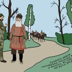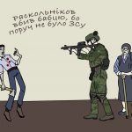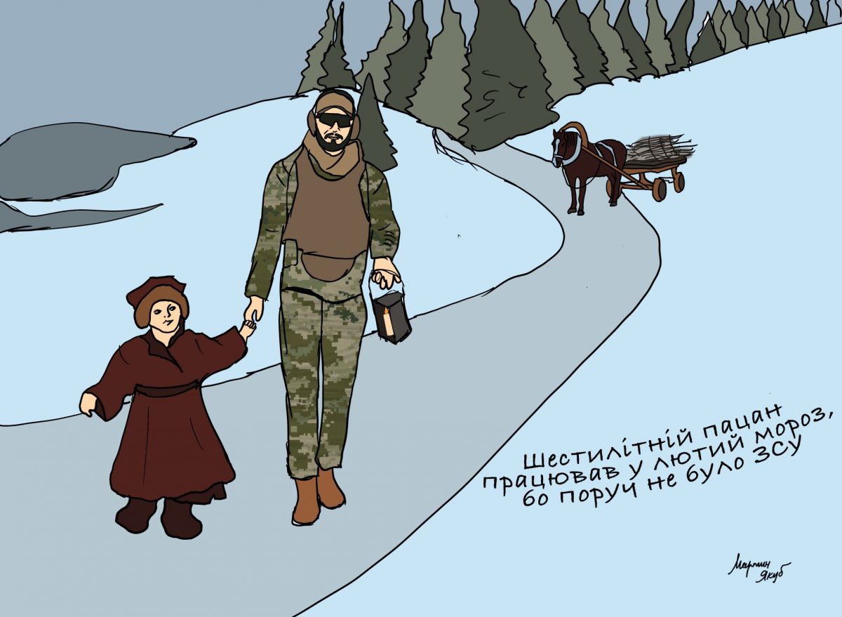 − У будь-якому разі ідея на Ваших зображеннях важливіша за графічне виконання. Дуже влучною стала серія робіт під назвою «…бо поруч не було ЗСУ», створена на загальновідомі сюжети класичної російської літератури. Як виникли ідея цієї серії?