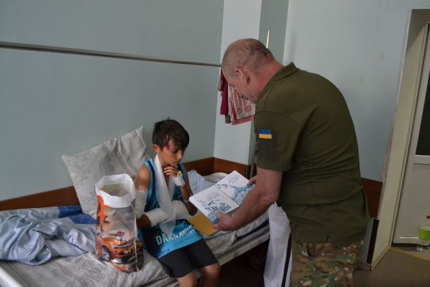 Під час відвідання закладу військові поспілкувалися з дітьми. Зокрема, з підлітком із Донеччини, якому осколками поранило ногу: попри важке поранення, він намагається не падати духом та сподівається на швидке відновлення. Ще одного хлопчика застали за процесом перев’язування — у нього численні осколкові поранення руки.