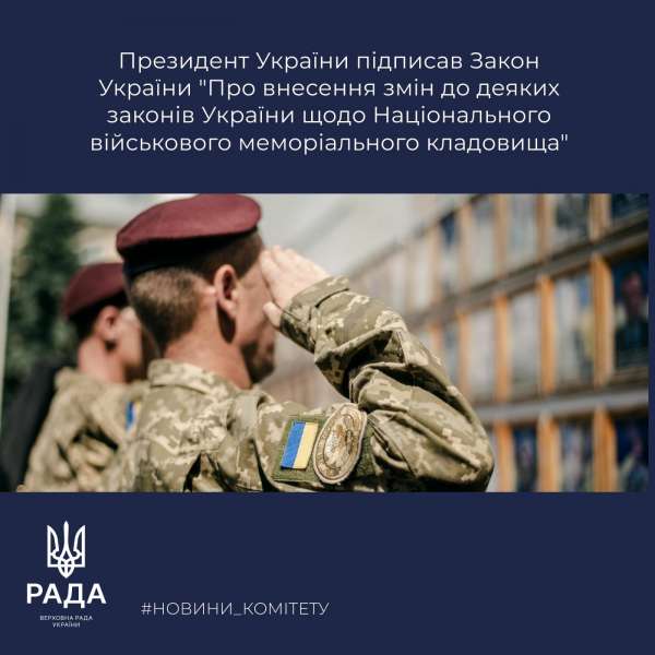 Закон України «Про внесення змін до деяких законів України щодо Національного військового меморіального кладовища» №2292-IX повернуто з підписом Президента України.