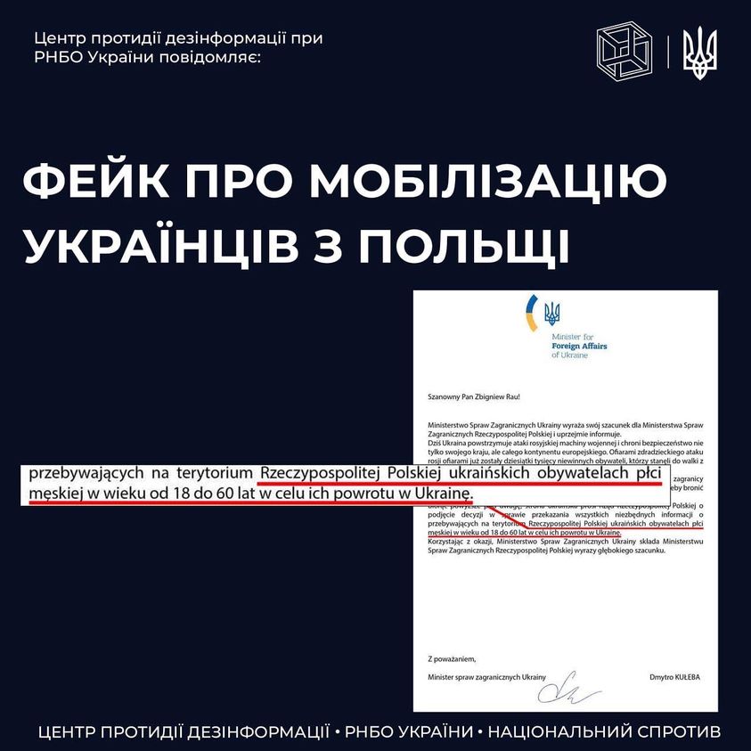 Урядовий центр безпеки Республіки Польща виявив фейковий лист до Міністерства закордонних справ Польщі, що нібито надійшов від МЗС України.