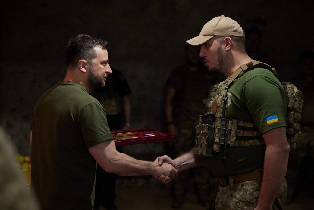 Президент України Володимир Зеленський відвідав передові позиції українських військ у Миколаївській області та вручив орден «Золота Зірка» з присвоєнням звання Героя України полковнику Вадиму Сухаревському, командиру 59-ї окремої мотопіхотної бригади оперативного командування «Південь» Сухопутних військ ЗСУ.