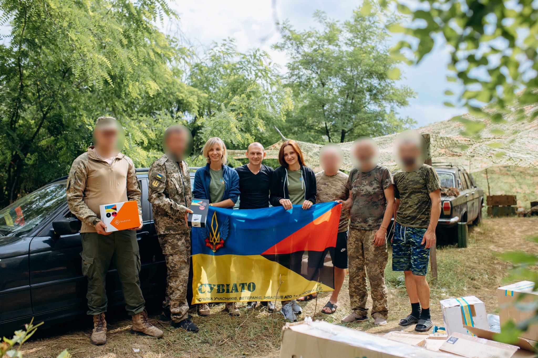 Першою з них стала одна зі стрілецьких рот окремого стрілецького батальйону. Цьому підрозділу волонтери привезли 2 тепловізори, коліматорний приціл, 4 планшети та карти пам’яті до них, підібрані під програмне забезпечення, яке використовують захисники, десяток павербанків, велику кількість інструментів, серед яких – зварювальний апарат із запасом електродів, ручні та електроінструменти. Крім того, воякам передали 40 спальних мішків, 26 карематів, а також значну кількість продуктів харчування – тушковану курятину власного виробництва й різноманітні смаколики.