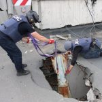 Нині до проведення цієї операції залучили спеціальний аварійно-рятувальний автомобіль, автонавантажувач, піротехнічний автомобіль, важкий автокран та близько десяти саперів та рятувальників.