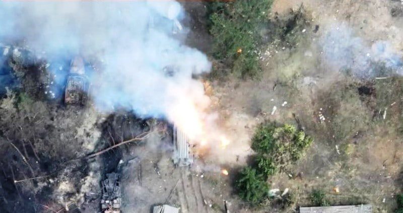Артилеристи десантно-штурмових військ ЗСУ філігранно знищили реактивну систему залпового вогню противника 220-мм БМ-27 «Ураган» та БРЕМ (броньовану ремонтно-евакуаційну машину) російських окупантів.