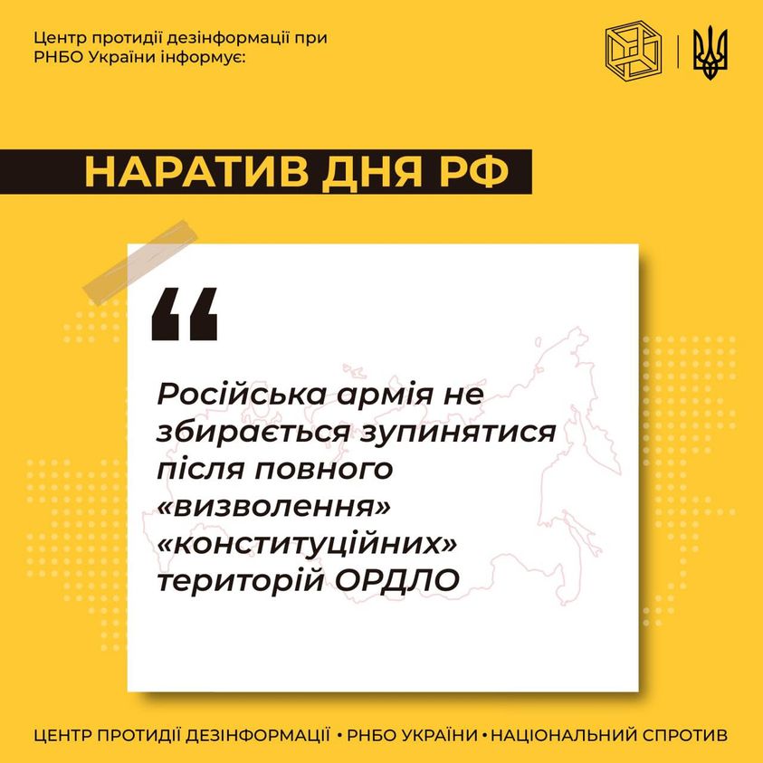 ЦПД_інформує про те, які теми нині поширюють рашисти, щоб вплинути на настрої українського населення і, насамперед, забезпечити загарбнику оптимальні умови для взяття під контроль територій. Тобто зробити все, щоб українці не чинили опору російським окупантам.