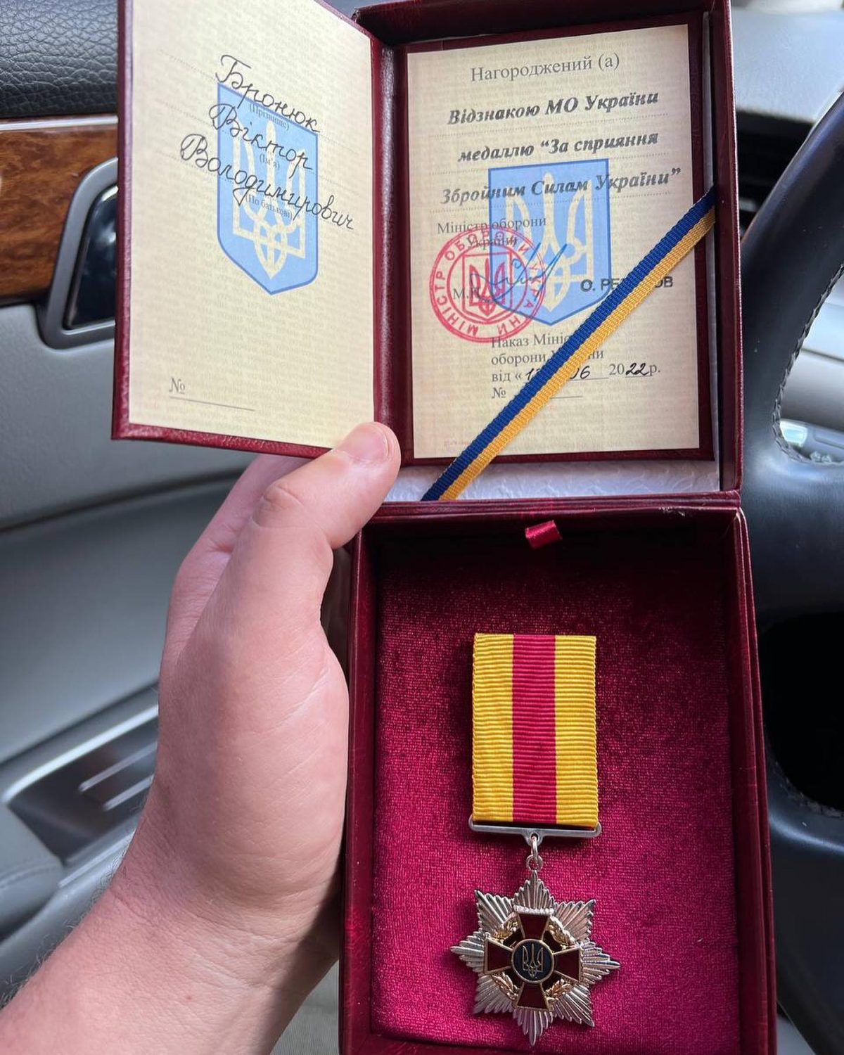 — Секрет простий: у друзях, друзях друзів, друзях друзів друзів… І так далі, ланцюжок можна продовжувати до нескінченності, — пояснює Віктор Бронюк. — Майже кожен, з ким зводила доля в той чи інший період життя, нині щиро долучається до добрих справ. Тож отриману нагороду присвячую своїм друзям-волонтерам із Вінниці та всіх міст України, США, Великої Британії, Нідерландів, Франції, Польщі, Туреччини та інших дружніх країн, завдяки яким нам і вдається наближати перемогу. Слава ЗСУ, всім волонтерам і нашій Україні!