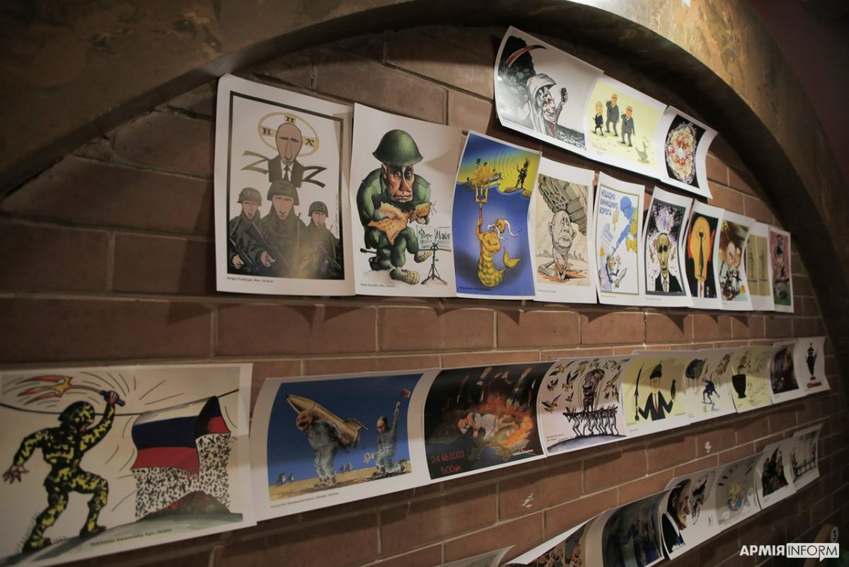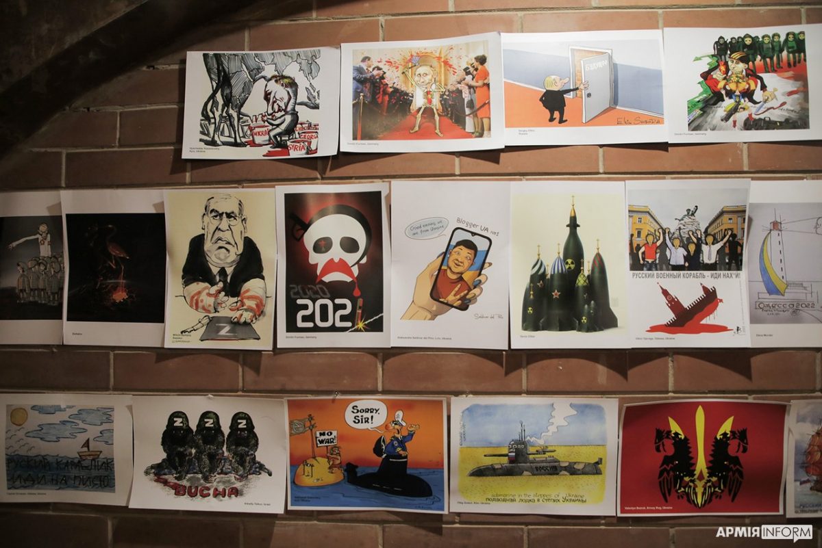 Виставка політичних та антивоєнних карикатур відбувається у рамках міжнародного конкурсу під гаслом «Русскій воєнний корабель..!»