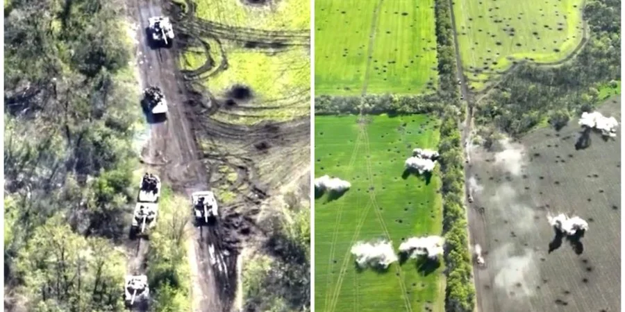 Артилеристи ЗСУ обстріляли колону бронетехніки окупантів. Знищено щонайменше 5 танків Т-72 і 2 БМП.