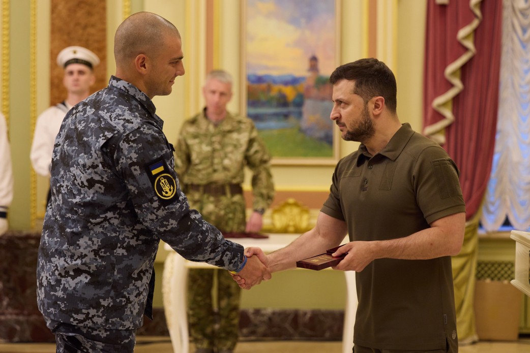 У День Військово-Морських сил Збройних Сил України Президент Володимир Зеленський вручив ордени «Золота Зірка» військовослужбовцям, яким присвоєно звання Героя України, а також інші державні нагороди, яких удостоєні українські захисники. Він наголосив, що Україна пишається кожним військовим ВМС, адже із самого початку російської агресії вони дають гідну відсіч ворогу та завдають йому відчутних втрат. Повідомляє Офіційне Інтернет-представництво Президента.