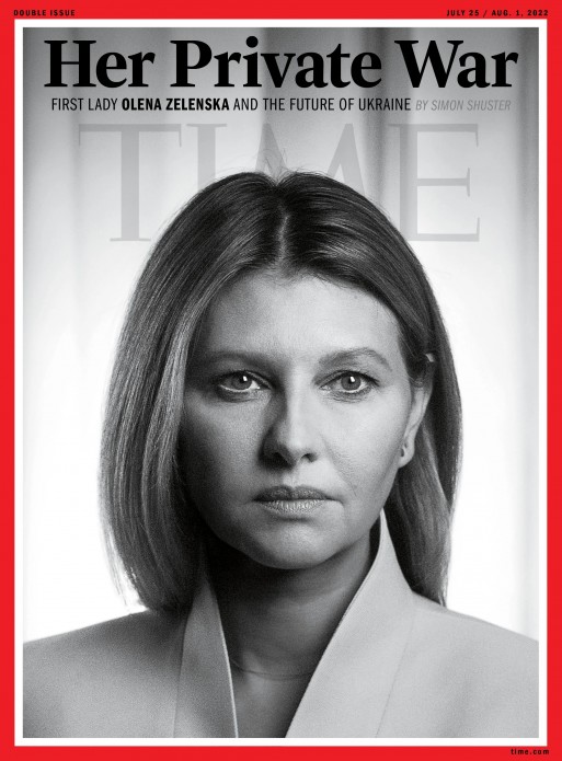 Перша леді України Олена Зеленська дала інтерв’ю американському тижневику TIME. Журнал розмістив фото дружини Президента України на обкладинці з підписом «Її війна».