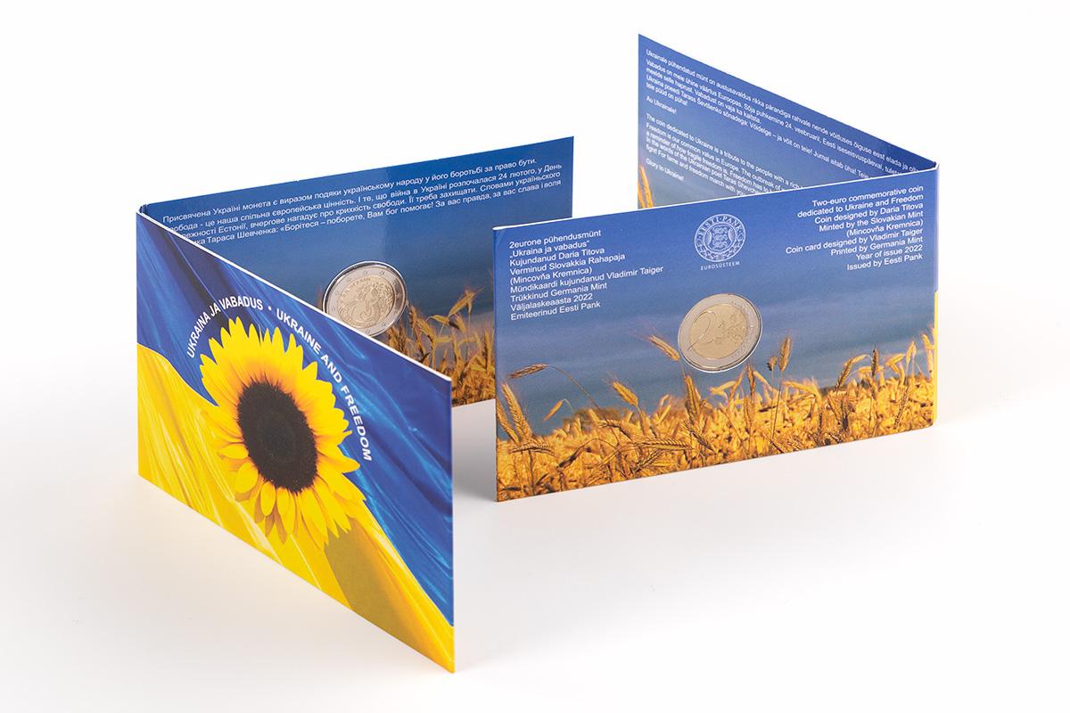 Банк Естонії у п’ятницю, 8 липня, розпочав продаж монети номіналом 2 євро, яка присвячена Україні. Залучені від продажу монет кошти підуть Центральному банку України на підтримку боротьби за свободу країни.