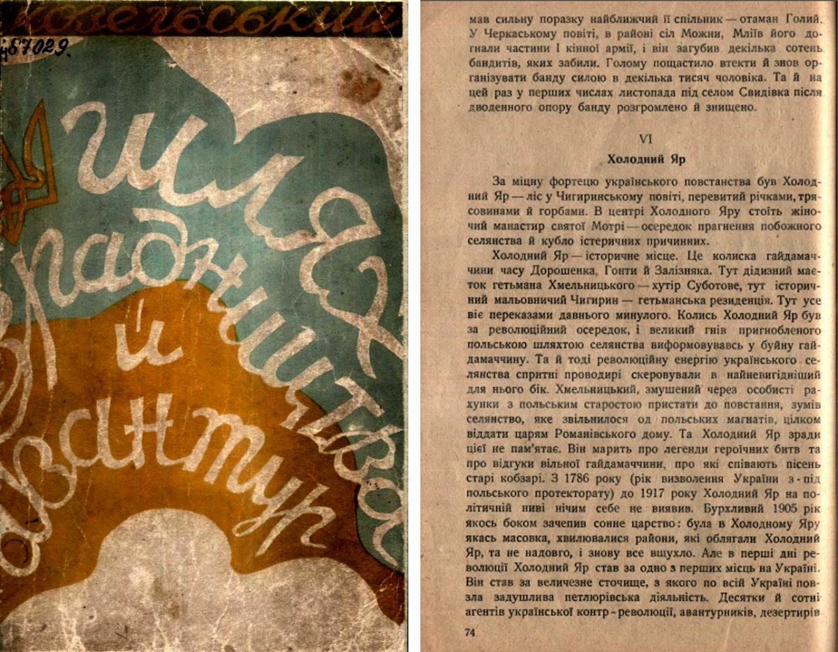 — Почасти так, але лише почасти. Репутація «Холодного Яру» як міцного осередку повстанців склалася у 1920-ті роки, ще до виходу роману. Якщо ми візьмемо книгу Бориса Козельського «Шлях зрадництва та авантур» — вона вийшла 1927 року в срср із жовто-блакитним прапором і тризубом на обкладинці — то там є розділ, присвячений «Холодному Яру». Тож вже до появи роману було певне особливе ставлення до цієї місцини.