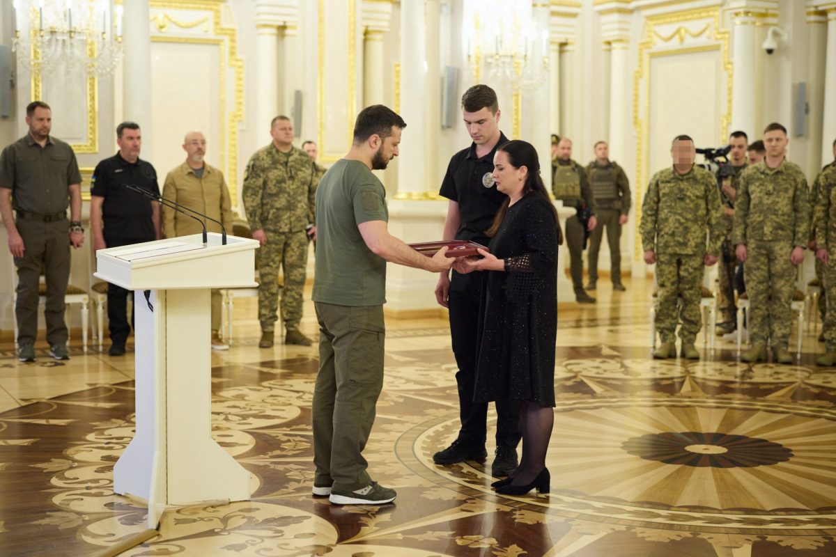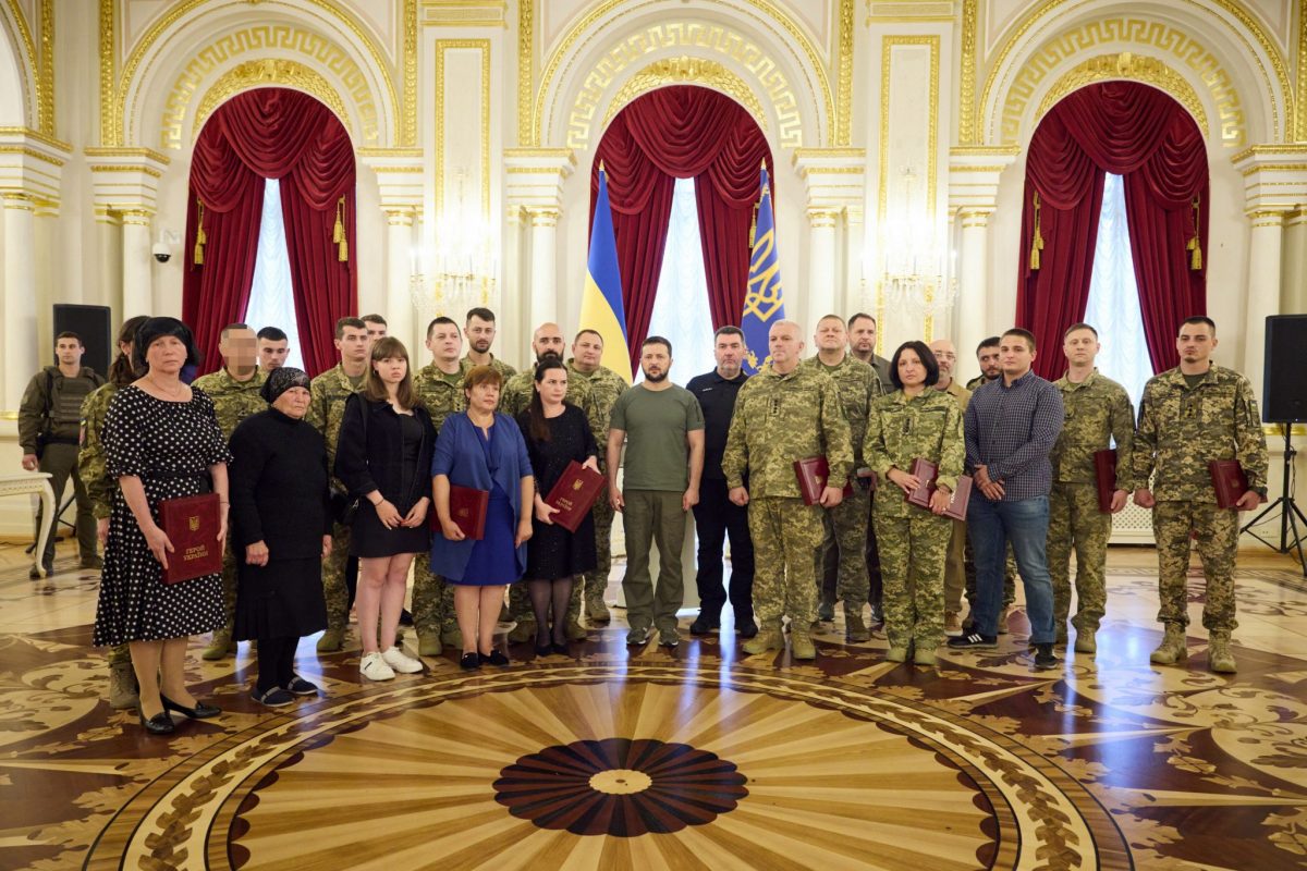 Президент України Володимир Зеленський вручив ордени «Золота Зірка» військовослужбовцям, яким присвоєно звання Героя України, та членам родин загиблих захисників, удостоєних цього звання посмертно.
