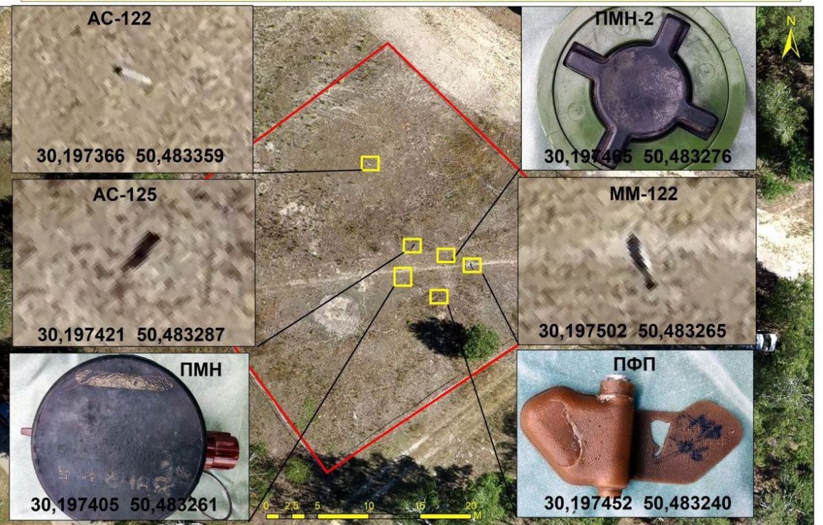 Як це працює? На тестовому майданчику були закладені в землю декілька ВНП – мінометна, протипіхотна та протитанкова міни, крім того – уламки снарядів, гільзи. Адже зазвичай місця, де точилися бої, забруднені різним металевим мотлохом.