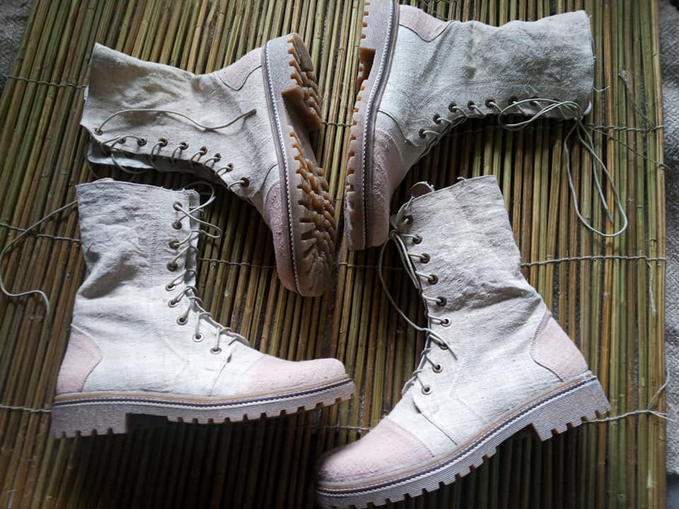 Ну і – конопляне взуття. Це не жарт, а реальність, адже у своїй невеликій майстерні Олег Земнухов із помічниками шиє з технічних конопель і взуття – як цивільне, так і військове.