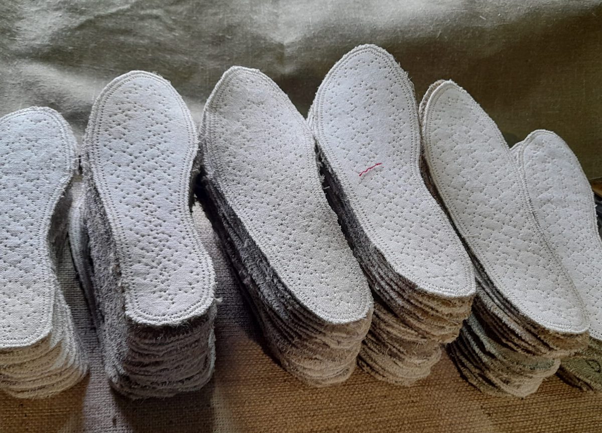 З конопель же – і устілки всередині взуття. Олег Земнухов говорить, що їхні хендмейдерські конопляні устілки насичені потужною енергетикою, адже в них полотно зіткане вручну. Також вони ефективно поглинають вологу й ноги не так втомлюються завдяки їм. Адже майстер навіть запатентував технологію – ці устілки мають масажний ефект. А під час їхнього виробництва він додає до конопель ще й квіти полину.