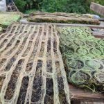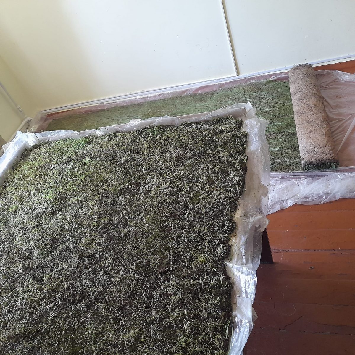 – Ми сіємо траву на основу із мішковини та створюємо певні умови: догляд, постійний полив, – додає біодизайнер. – Коли вже трава досягає потрібної довжини, проводимо процес стабілізації, потім сушимо і викроюємо.
