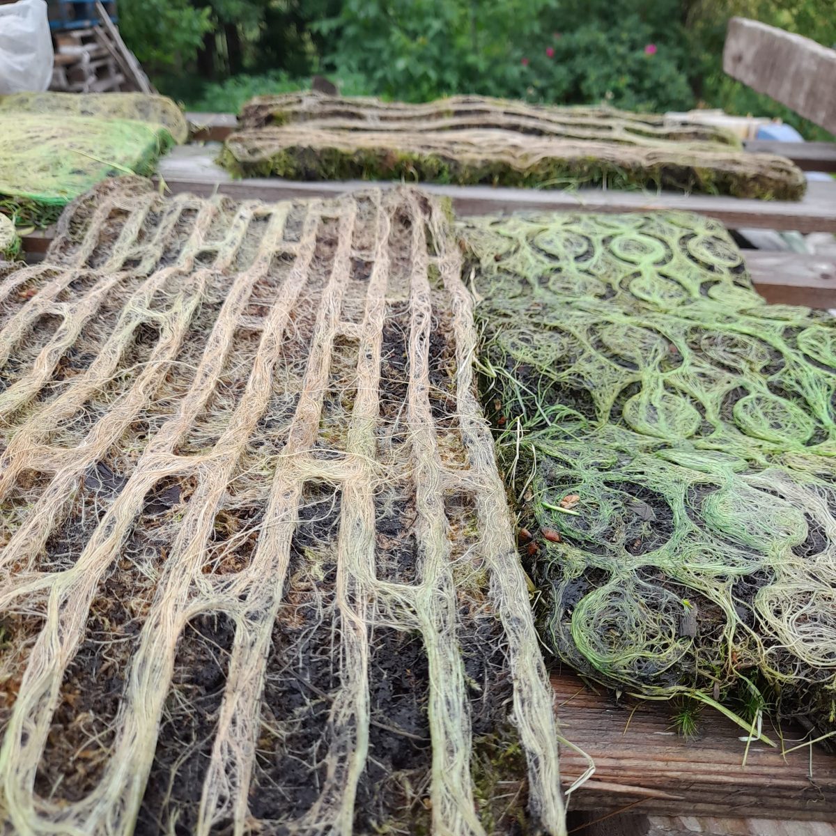 З вирощеної суміші газонних трав виготовляються килими, а вже вони слугують для накриття військової техніки, або стають матеріалом для пошиття маскувальних костюмів у повний зріст.