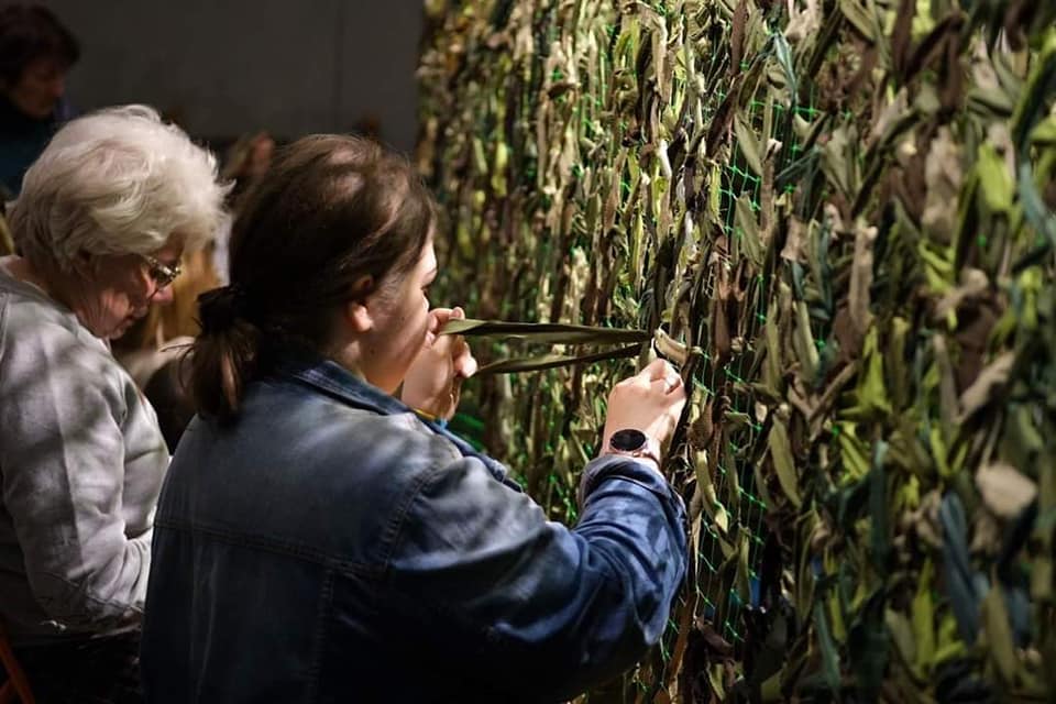 — За цей період ми встигли чимало зробити. Сплели понад 4,5 тисячі квадратних метрів маскувальних сіток. Знайшли швейні машинки, тканину, швачок і відкрили мініцех, де вже створено понад 1000 українських прапорів та інші потрібні нашим воякам вироби з тканини. Переслали на фронт тонни амуніції, медицини та захисного спорядження. Але це, так би мовити, суто технічний бік нашої боротьби. Кожен день ми зустрічаємо з вдячністю нашим воїнам за можливість бачити сонце й небо. Хіба можемо ми стомлюватись? Чи маємо право занепадати духом, маючи таких диво-захисників, які захищають Україну й українців?! Вони наші найголовніші мотиватори! Разом переможемо! — говорить жінка.
