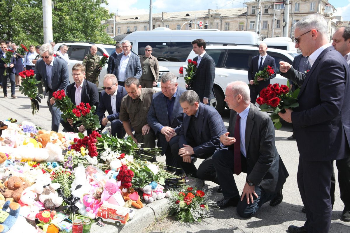 Засудження жахливого злочину росії проти цивільного населення і готовність надати допомогу за потреби — головне, що почули під час зустрічі представники місцевої адміністрації від іноземної делегації. Вони побували на місці трагедії та вшанувала пам’ять жертв від російського ракетного удару.