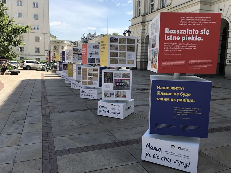 У різних містах Польщі відкрилась особлива виставка, яка представляє історичні малюнки польських дітей з 1946 року, а також сучасні малюнки українських дітей, пов’язані з війною, яку розпочала рф в Україні.