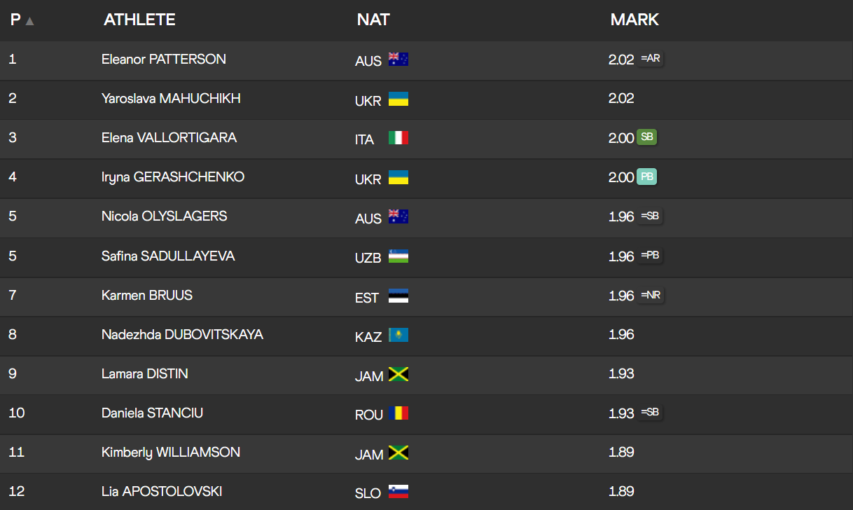 За підсумками фінальної серії Магучіх посіла друге місце з результатом 2,02 метра, поступившись лише за кількістю спроб Елеонор Паттерсон з Австралії (2,02).
