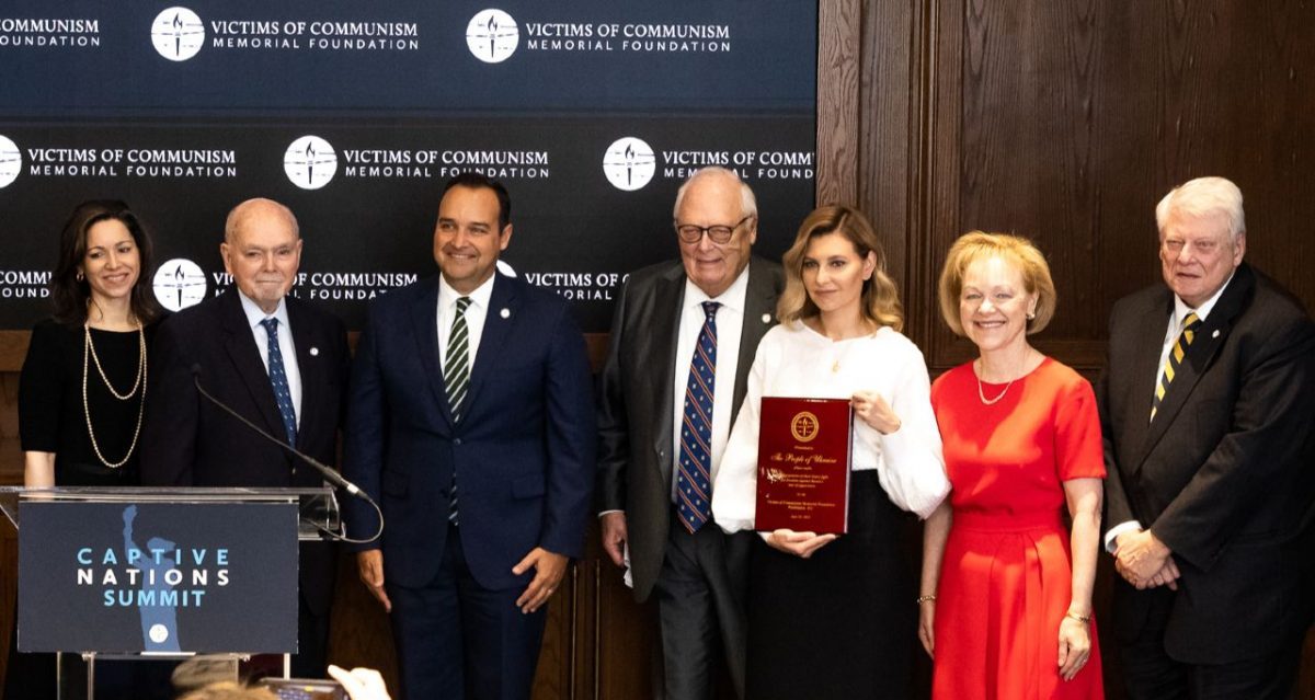 «Ціною героїчних зусиль ми боремося зараз не лише за свою свободу. Ми боремося, щоб сталінський Великий терор більше не зміг використовуватися ніде й ніколи у цивілізованому світі. Саме про це і говорить сьогоднішня нагорода, яку везу до України», – наголосила Олена Зеленська.
