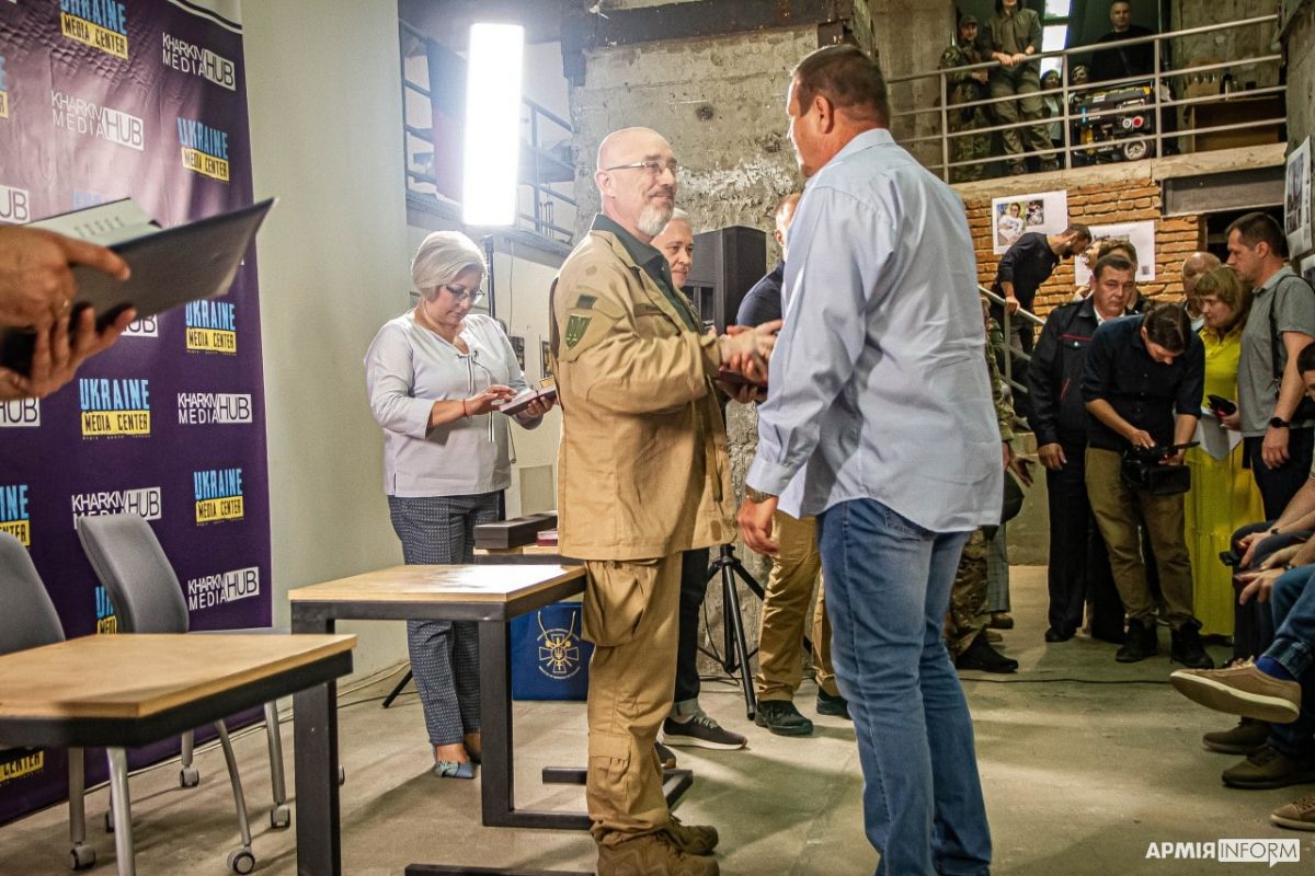 — Традиційно ми з командою виїхали в ті місця, де люди реально чинять опір російській збройній агресії. І сьогодні я знов з величезною приємністю мав можливість потиснути руки всім тим, хто заслуговує на нагороди. Це були лікарі, медсестри, військовослужбовці ЗСУ, гвардійці, поліцейські, волонтери, які допомагають всьому сектору оборони бути успішними в цій війні. Самовіддана праця та єдність — це запорука нашої майбутньої перемоги” — зауважив Міністр оборони.