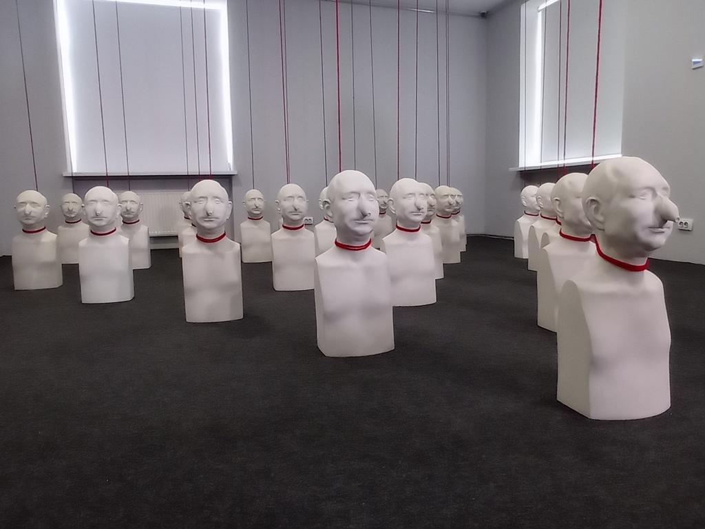 Гіпсовий бюст, який має назву «Римський портрет поганої людини» − робота вимушеного переселенця з тимчасово окупованої російськими загарбниками території України. Таких скульптур 30, і щодня одна з них буде знищуватися.