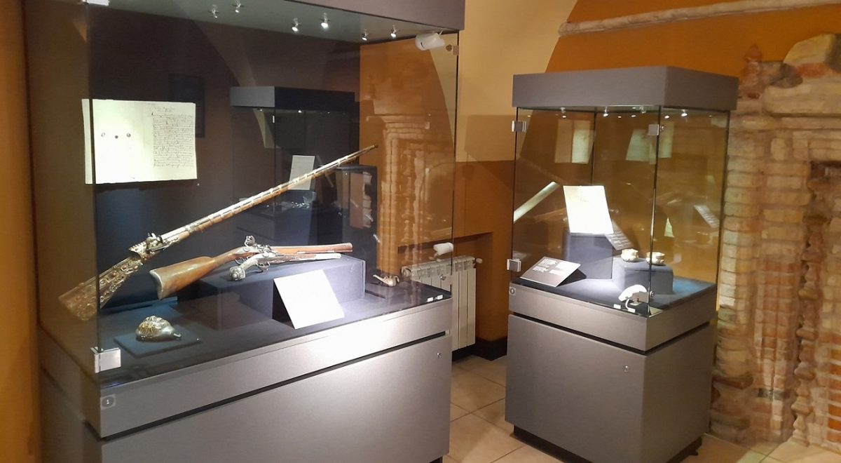 Око військового приверне зброя — гетьманська булава XVII ст. і полковницький пернач XVIII ст., парадна шабля із зображенням основних історичних подій Польщі, Русі та Литви кінця XVII — першої половини XVIII ст., тогочасна вогнепальна зброя, елементи захисних обладунків… Зброя не менша важлива в контексті збереження власної державності та національної ідентичності, ніж артефакти культури, позаяк лише зброєю можна обстояти своє право на самовизначення і самоврядність, оборонити свою самобутність.