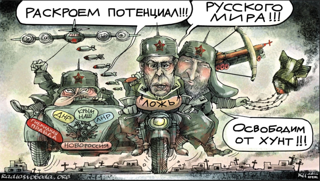 В росії, яка впевнено йде шляхом тотальної диктатури, в цьому плані не винайшли нічого нового. Хіба що до «згуртування задля відсічі ворогу» додалася ностальгія за «світлим» радянським минулим, коли «нас боявся весь світ» і взагалі «трава була зеленішою та дівки красивішими». Дивує лише, що ці пропагандистські дурилки досить ефективно впливають на російського обивателя в епоху інтернету. Здавалося б, в наш час знайти альтернативні джерела інформації не проблема, проте це не про росіян.